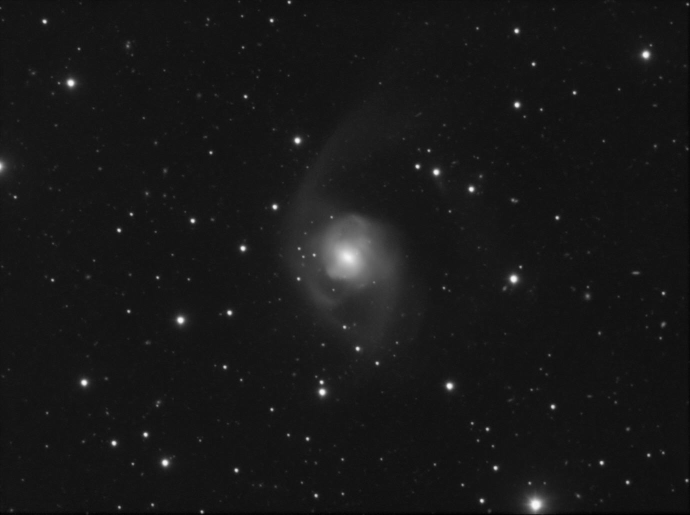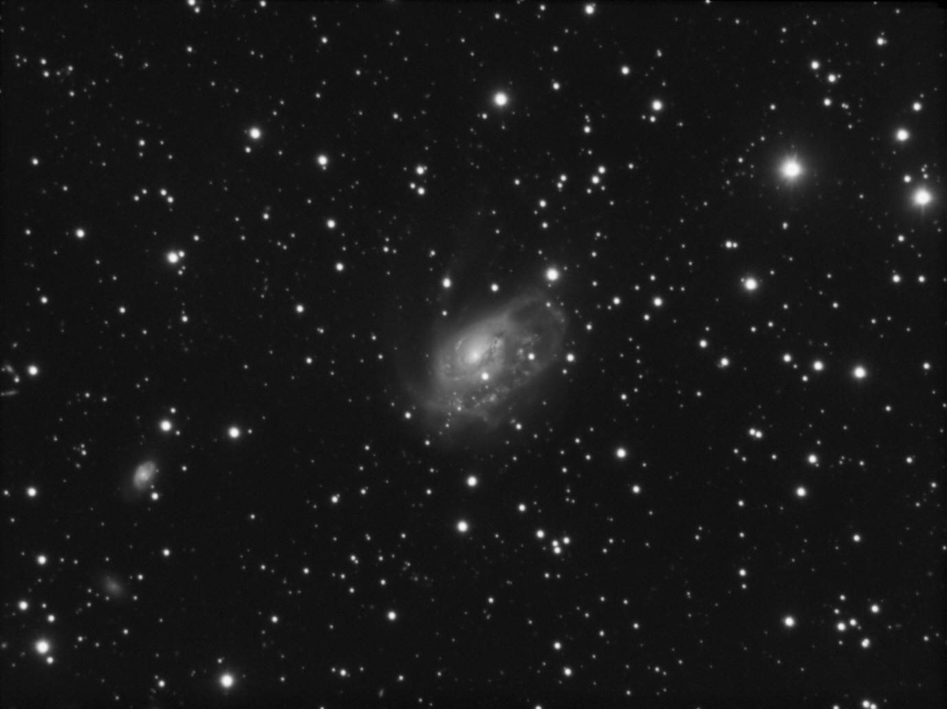 NGC7479 est une galaxie spirale barrée située à 105 millions d'années lumière ; image faite en seulement 11 poses de 10 minutes en attendant que M74 se lève. Pas de couches couleur (peu pertinentes sur cet objet).