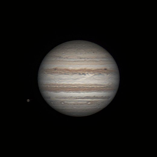 Une seconde longue animation a pu être faite le 17 décembre, avec cette fois une éclipse de Soleil par Io qui poursuit la grande tache rouge, une configuration